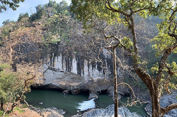 Syntheri Rocks in Dandeli are massive limestone monoliths carved by the Kaneri River, offering stunning views.